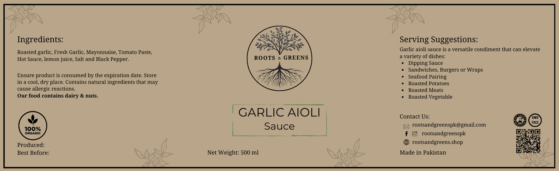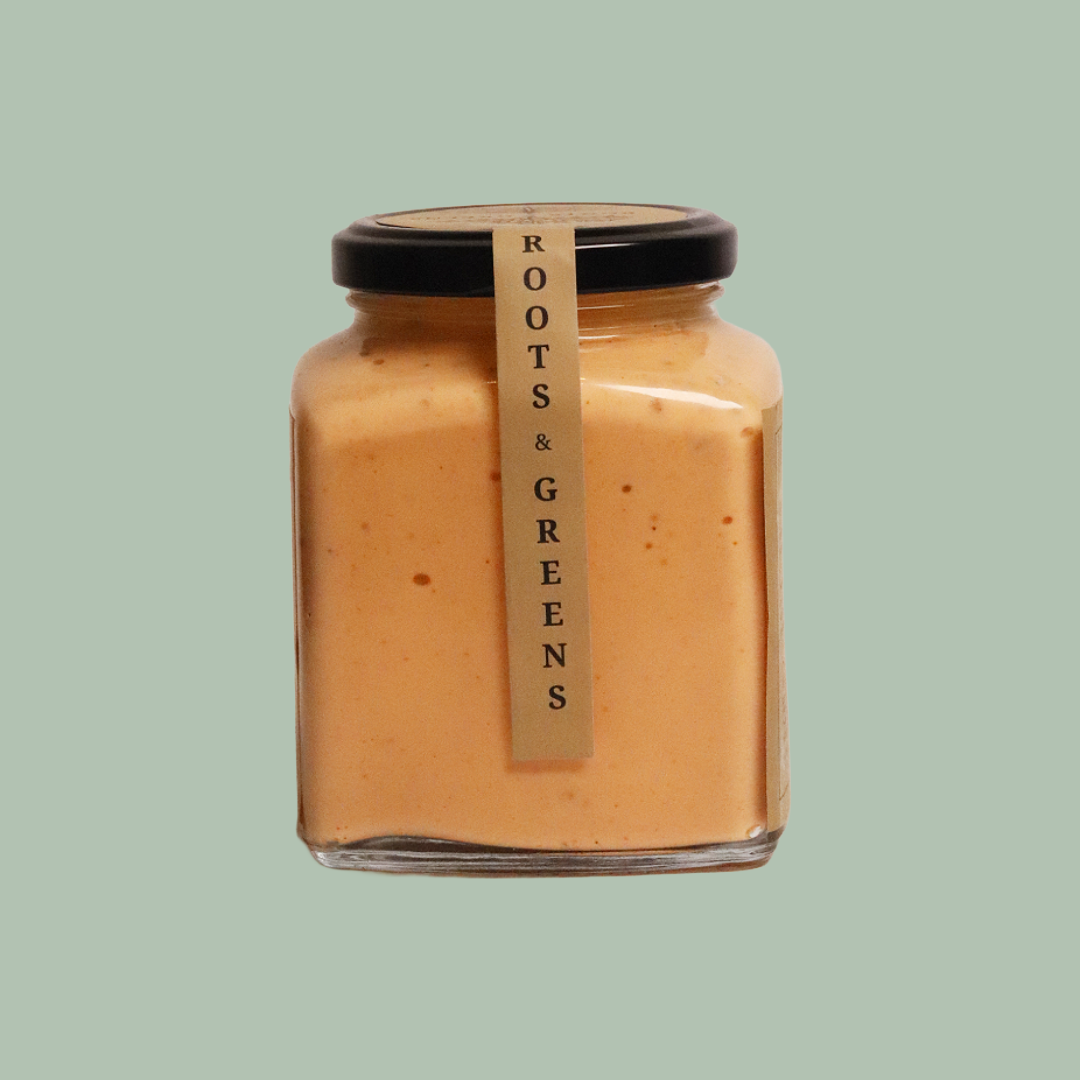 Roasted garlic, Fresh Garlic, Mayonnaise, Tomato Paste, Hot Sauce, lemon juice, Salt and Black Pepper.