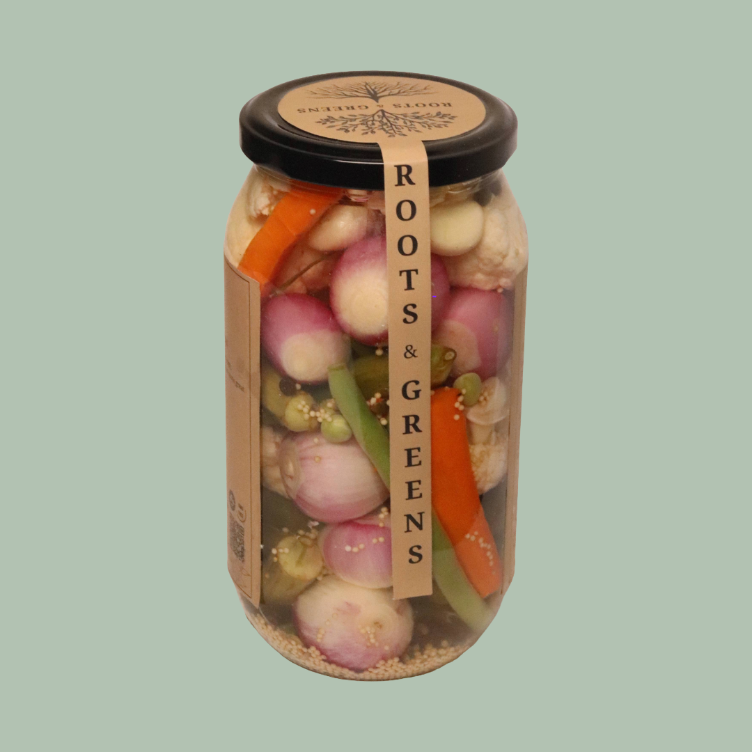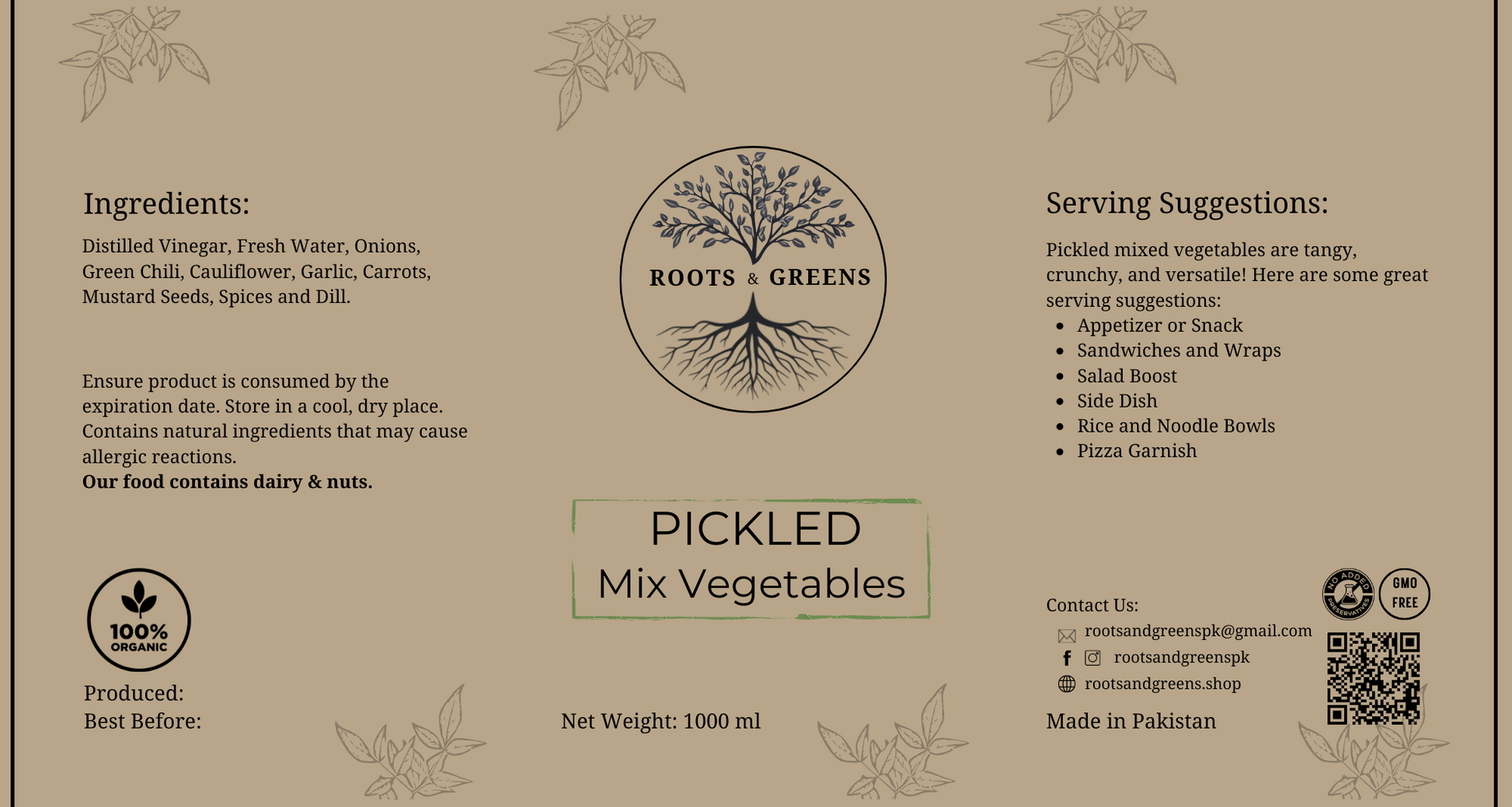 Distilled Vinegar, Fresh Water, Onions, Green Chili, Cauliflower, Garlic, Carrots, Mustard Seeds, Spices and Dill.